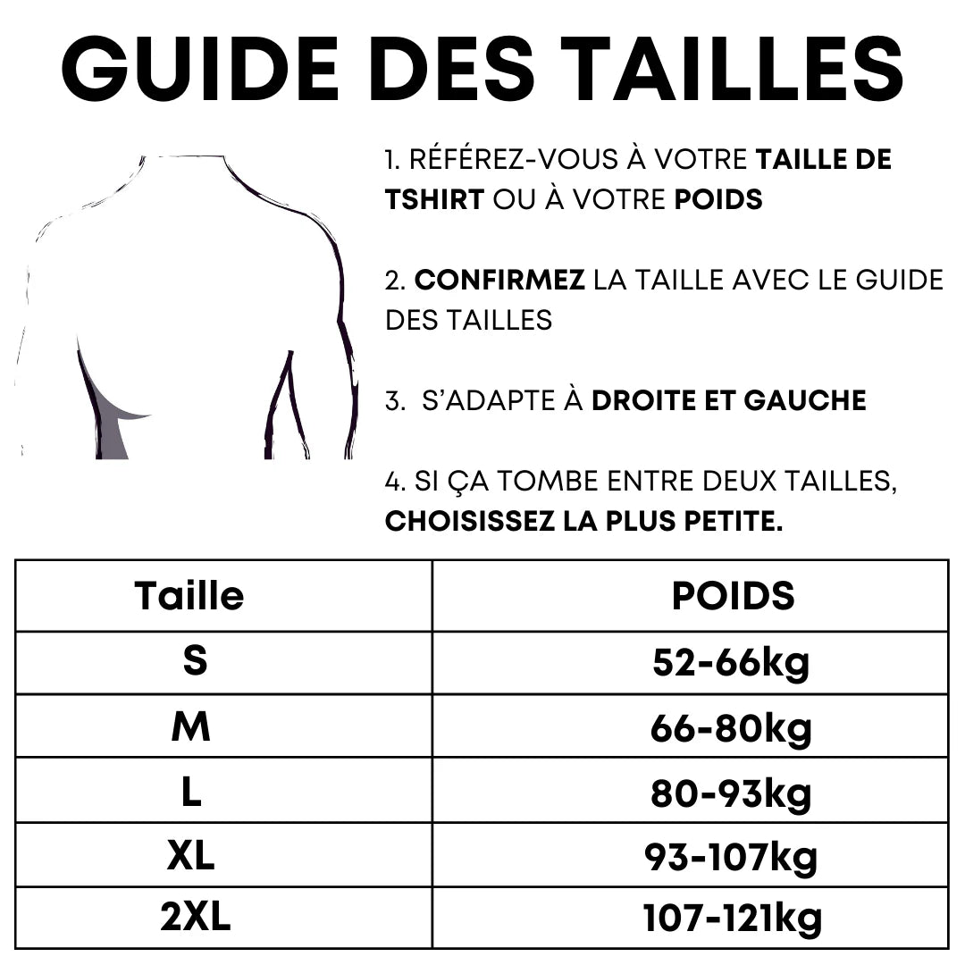 Si vous tombez entre 2 tailles, prenez la tailles en dessous pour un meilleur maintien.