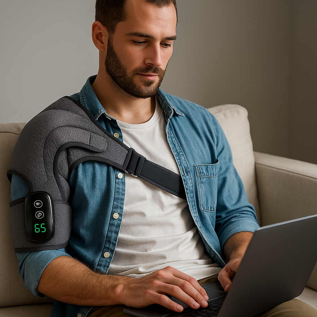 Notre épaulière chauffante enveloppe votre articulation comme une seconde peau, en combinant chaleur apaisante et vibrations ciblées pour un confort musculaire optimal.